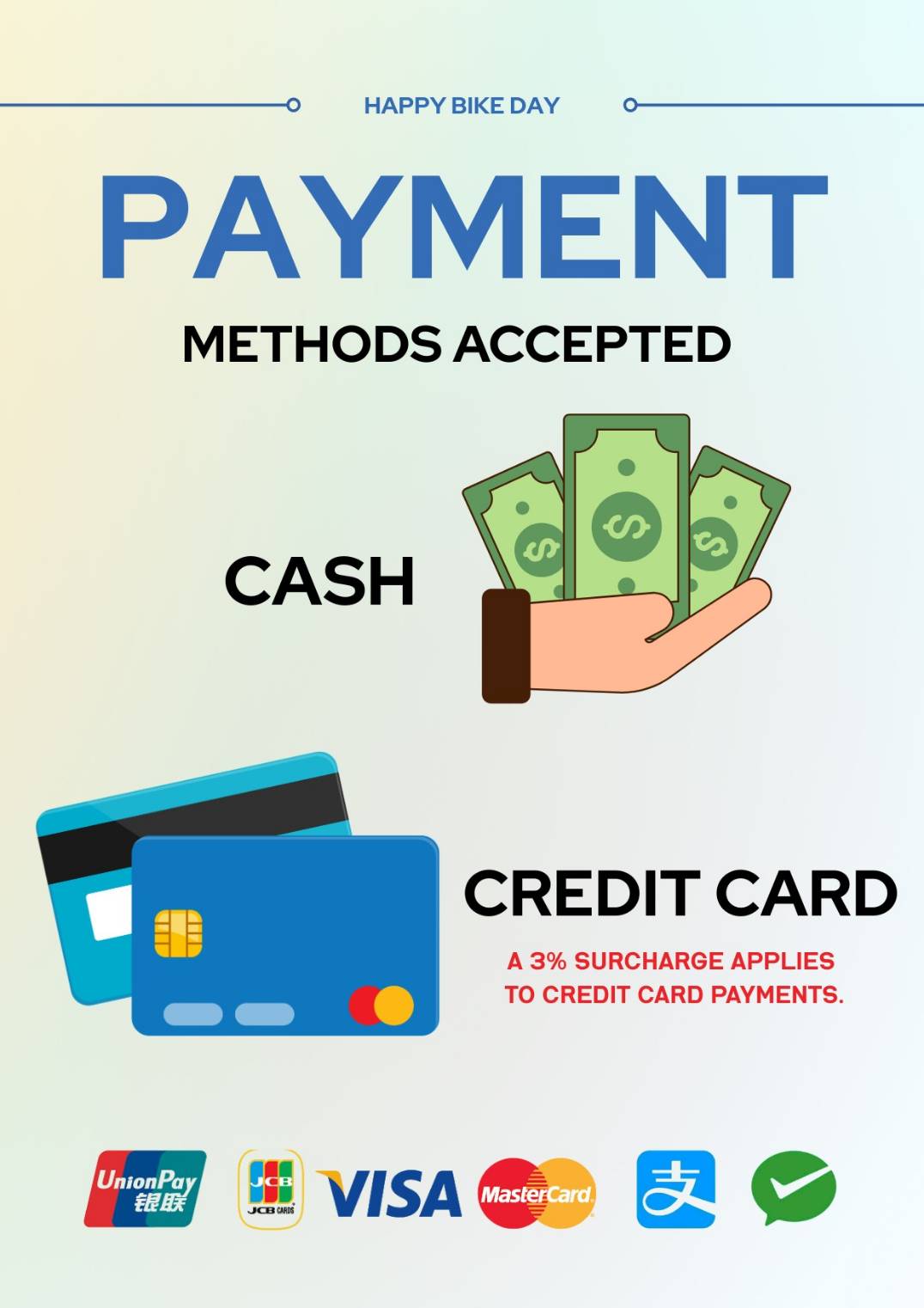 Since the card payment fee is taxed, please note that 3% of the total amount will be added to the card payment. Thank you!!!
